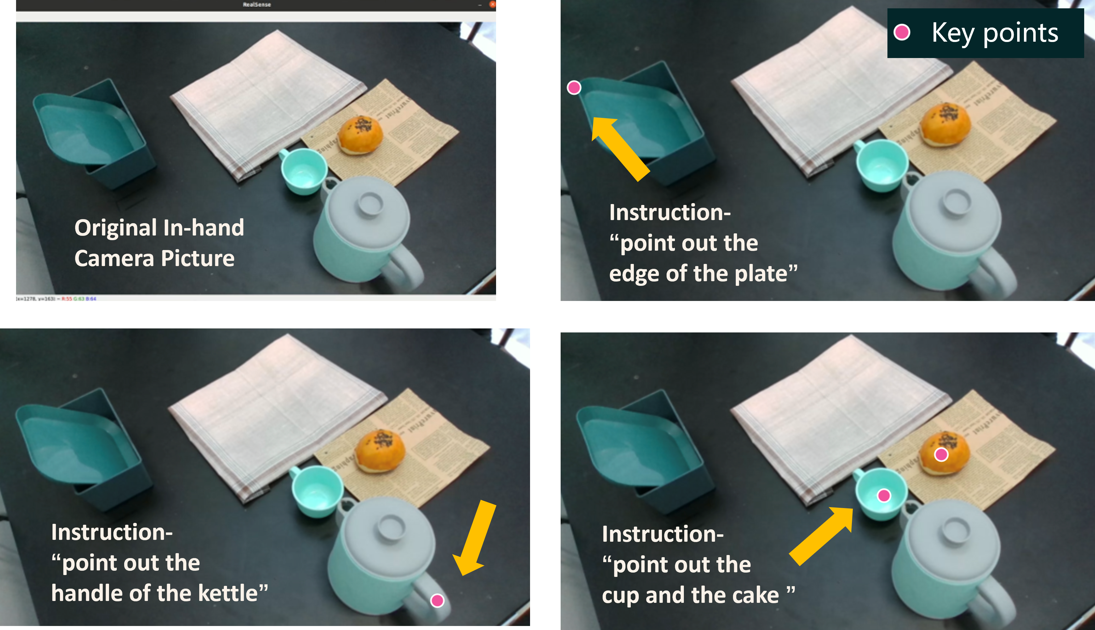 At the start of the pipeline of our experiments, we use the vision-language model (VLM) to get the keypoints that require manipulation of objects from the initail in-hand camera view.