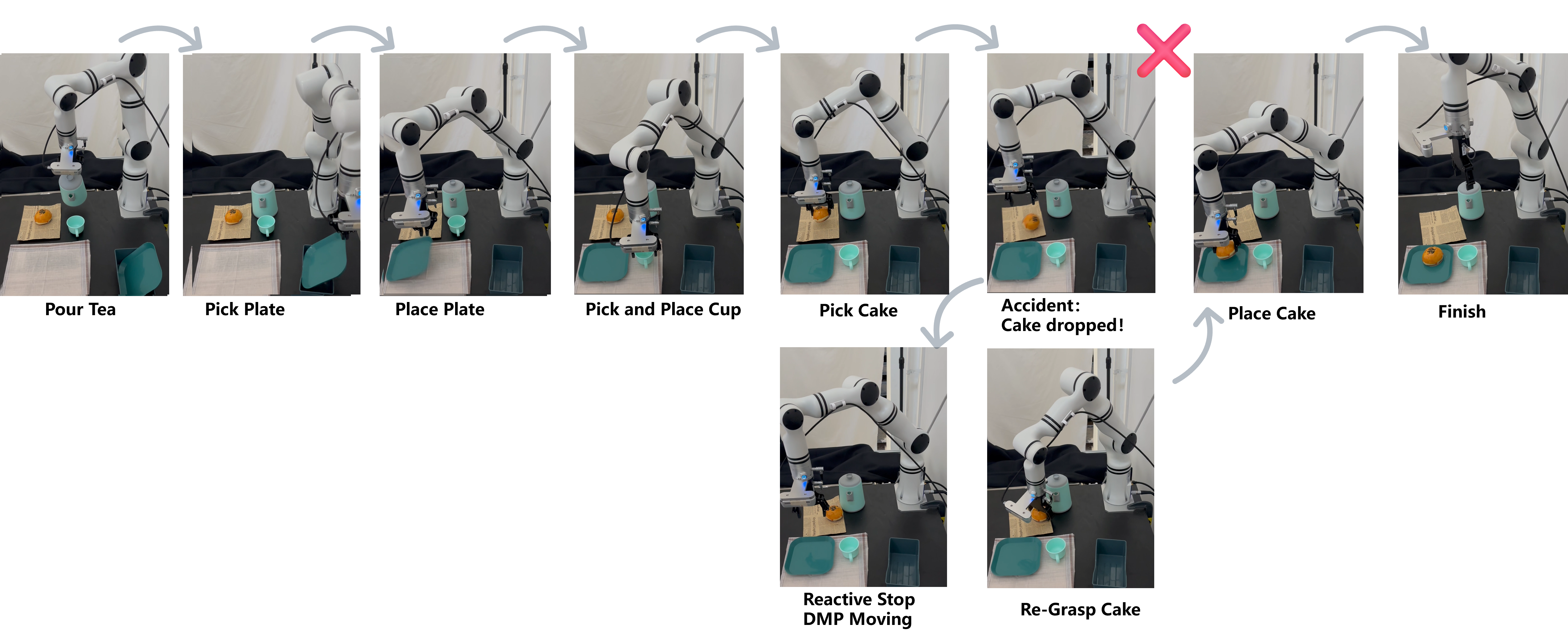 Here we show above two task completions using the proposed framework and the construction of Behavior Trees in task Afternoon Tea Preparation.